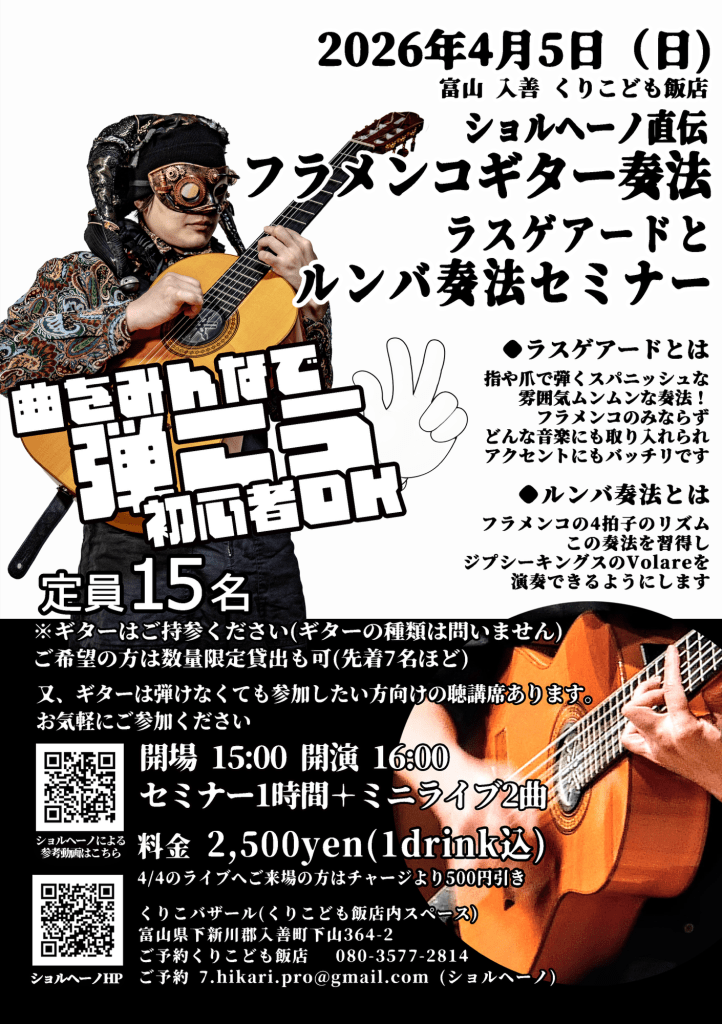 4月5日(土) 富山 入善 くりこども飯店※ギターセミナー