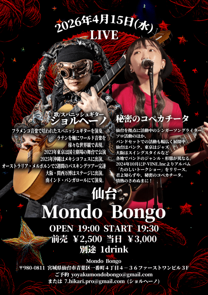 4月15日(水) 宮城 仙台 Mondo Bongo