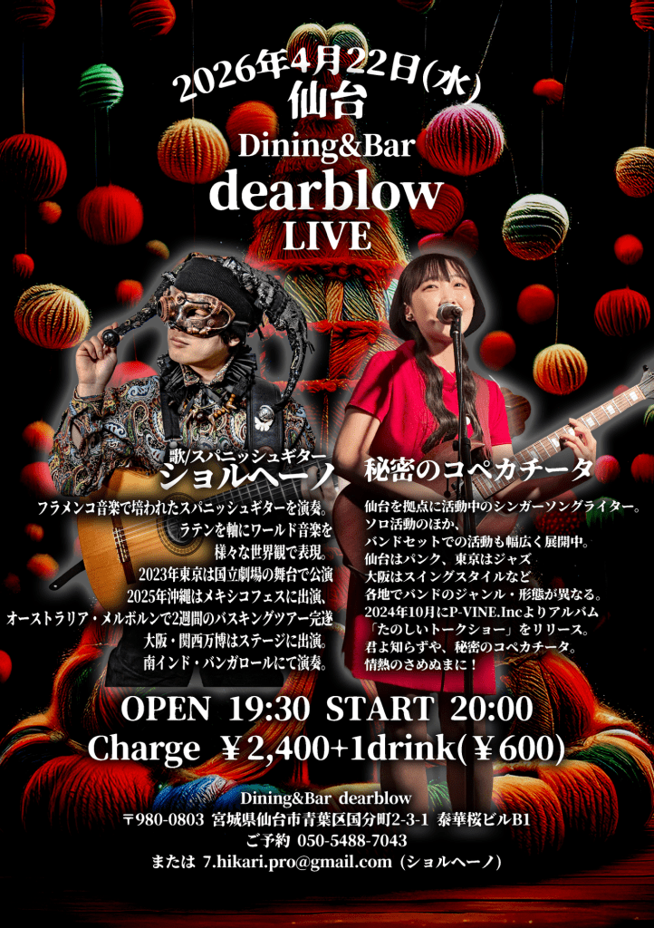 4月22日(水) 宮城 仙台 Dining&Bar dearblow