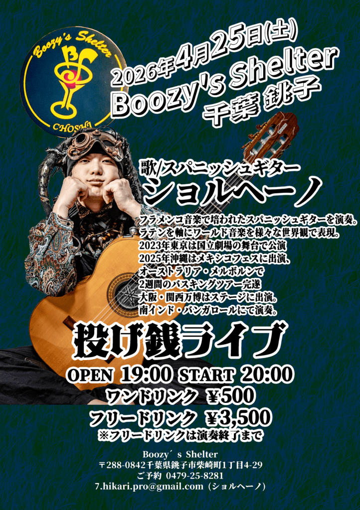 4月25日(土) 千葉 銚子 Boozy’s Shelter
