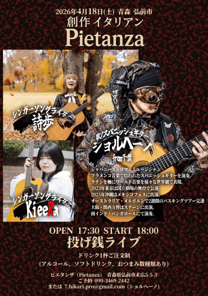 4月18日(土) 青森 弘前市 創作イタリアン Pietanza