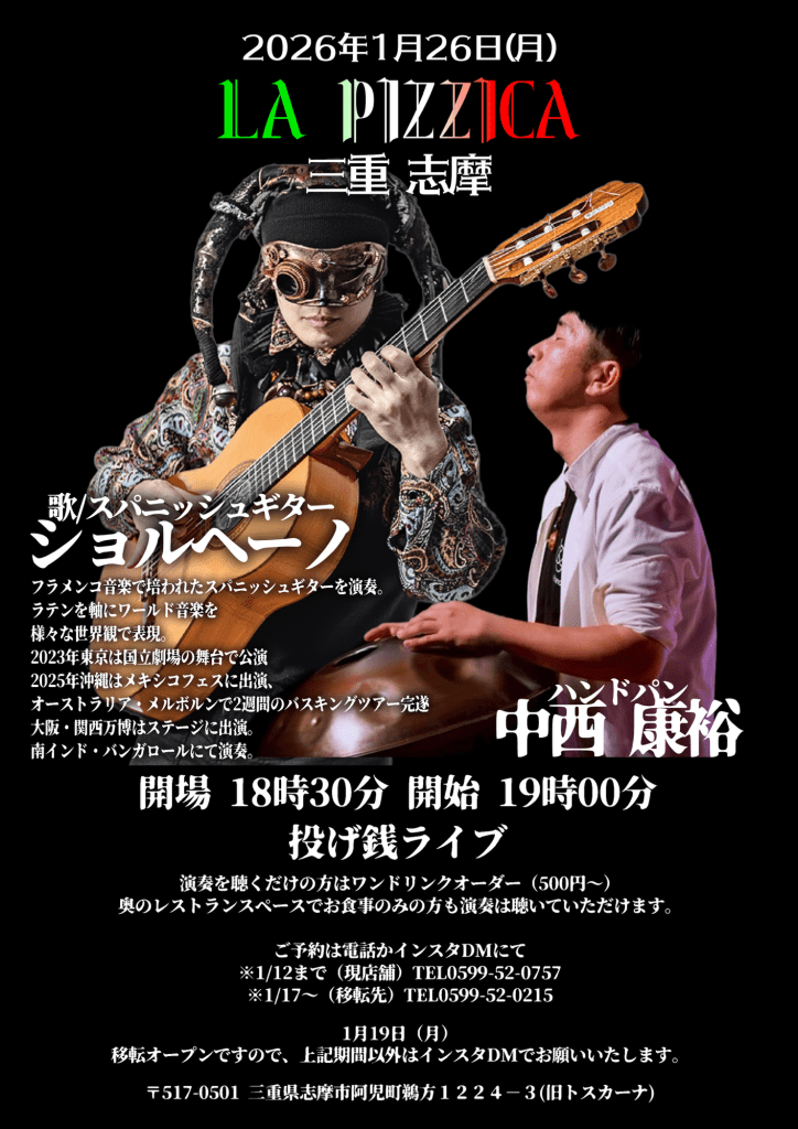1月26日(月) 三重 志磨 LA PIZZICA